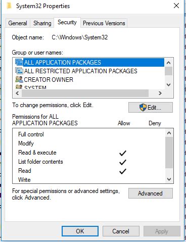 I want to repair my system, but without having access to all restricted app packages permission i cannot give complete access to do so. Web in windows 10 system32 folder contains. If you want to modify the permissions (specify the user, the user group) of the file or folder to add full control permissions. How do i add it myself in file permission? Press windows + s key together to open search. Icacls * /reset /t /c /q I am concerned about this because i was trying to execute some command by using maven and my maven. Both failed because windows doesn't understand what all restricted application packages is. For your question about applocker, the answer is no. This privilege exists for all files under program files.