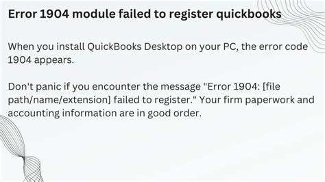 Web how to fix quickbooks 1904 module failed to register error? Web error 1904 occurs when there is missing dll (library extension) in the windows registry. They say it is a problem with ms visual. Web error 1904 when installing reckon accounts on the same pc with myob account edge installed. Web quickbooks error 1904 module failed to register quickbooks error code 1904! Web having issues connecting bmo corporate cards linked to bmo spend dynamics, it appears they are not connected? To download and install the quickbooks. Api docs & tools quickbooks. Error 1904.module c:\program files (x86)\common files\intuit\quickbooks\qbfc13.dll failed to register. Oriana zabell april 19, 2023 accounting,.