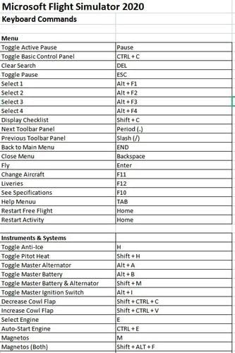 MS FS 2020 Keyboard Shortcuts/Bindings r/MicrosoftFlightSim