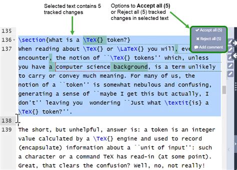 Overleaf Accept All Changes. Web the changes package, distributed with tex live, allows the user to manually markup changes of text, such as additions, deletions, or replacements. Accept or reject individual changes quickly with.