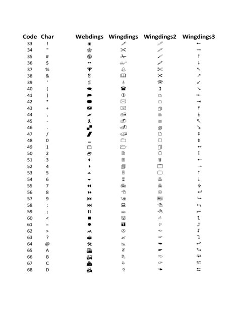 Wingdings & Webdings Font Icon Character Map (Printable Cheat Sheet